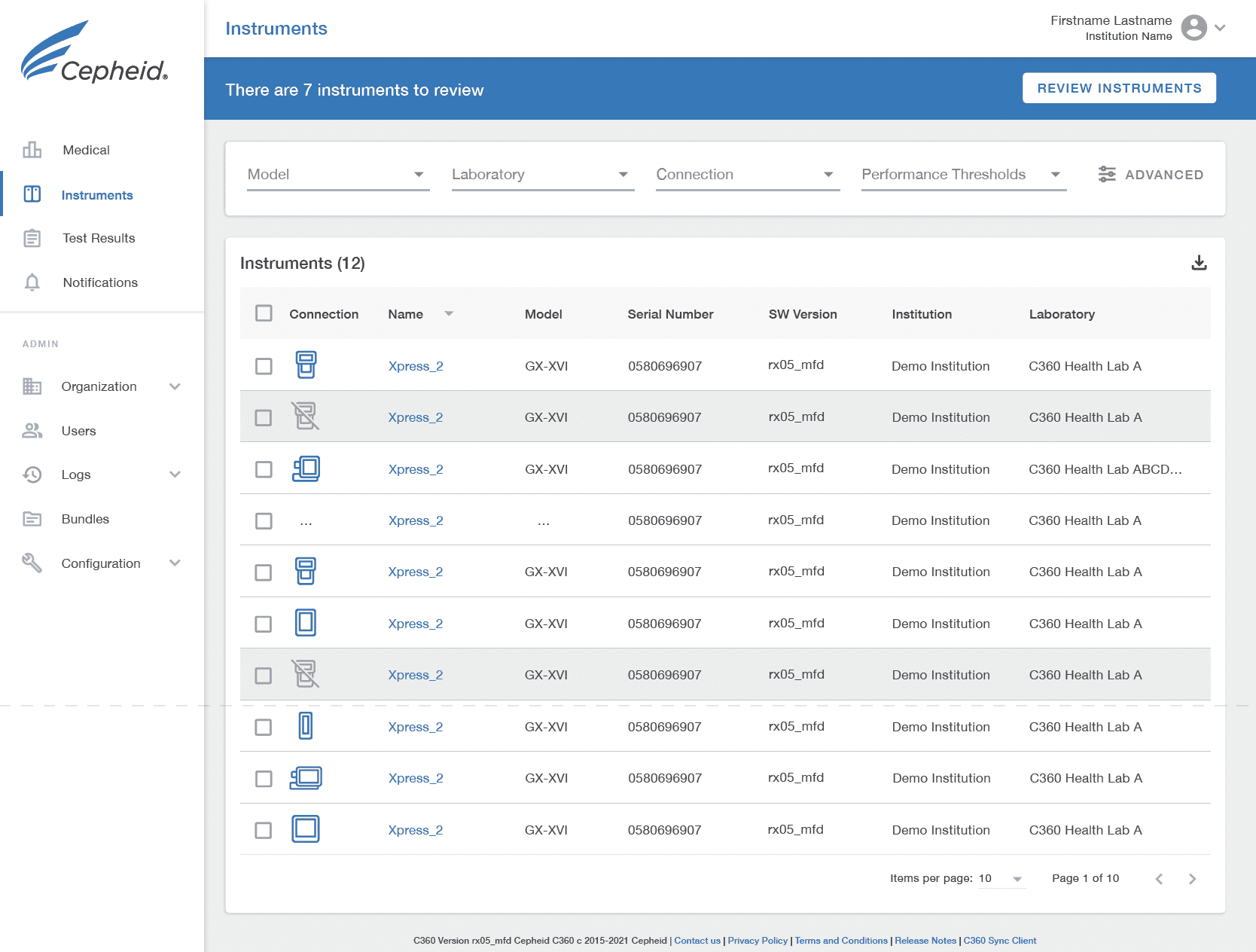 Site data tables and filtering tools were cleaned up, standardized, and templatized for the development team. Certain views, like Instruments, leveraged in-table icons to layer additional information into a snapshot view.